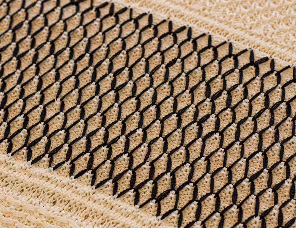 The particular points arise from the encounter between research and experimentation. Three-dimensional processing, pleats, reliefs and special effects transform the yarn into a living surface, rich in movement and materiality.